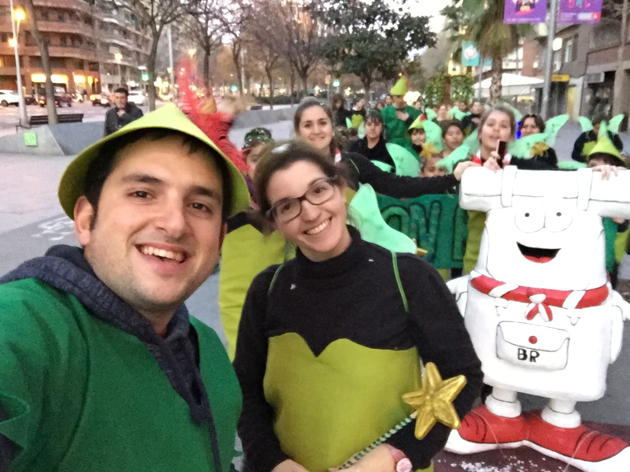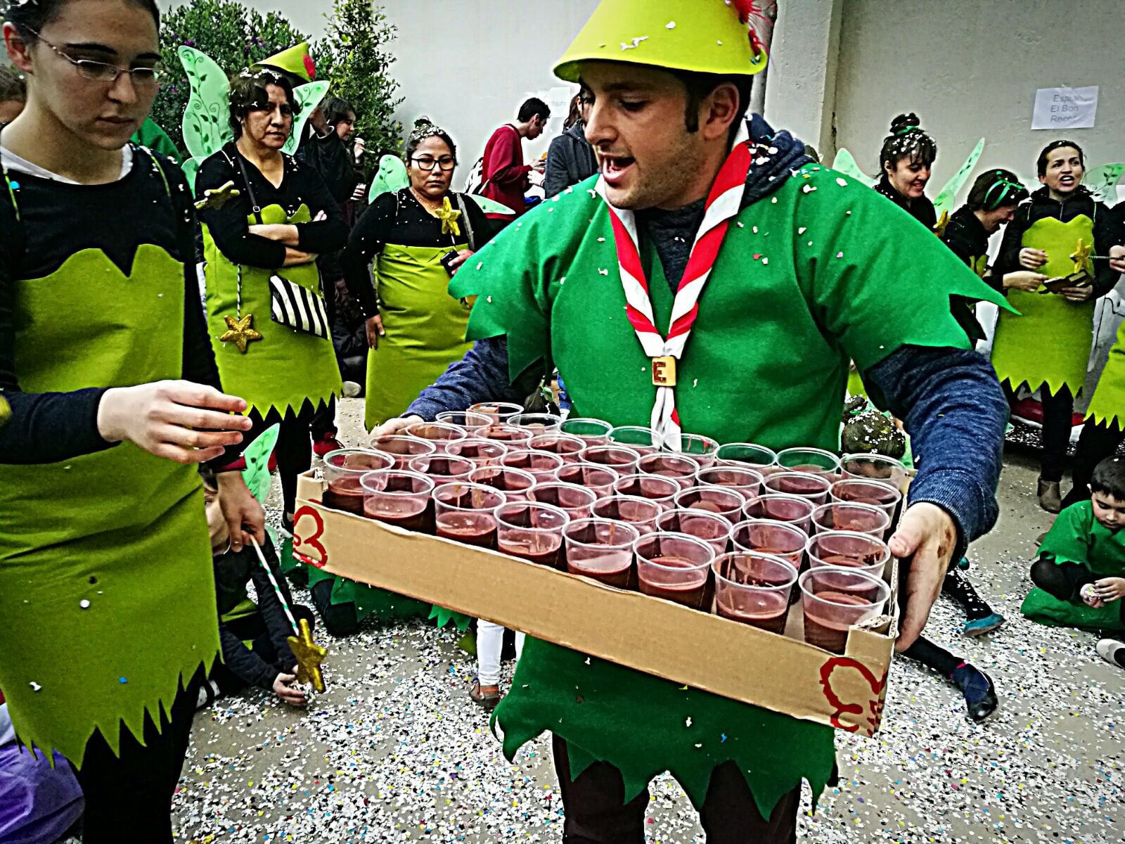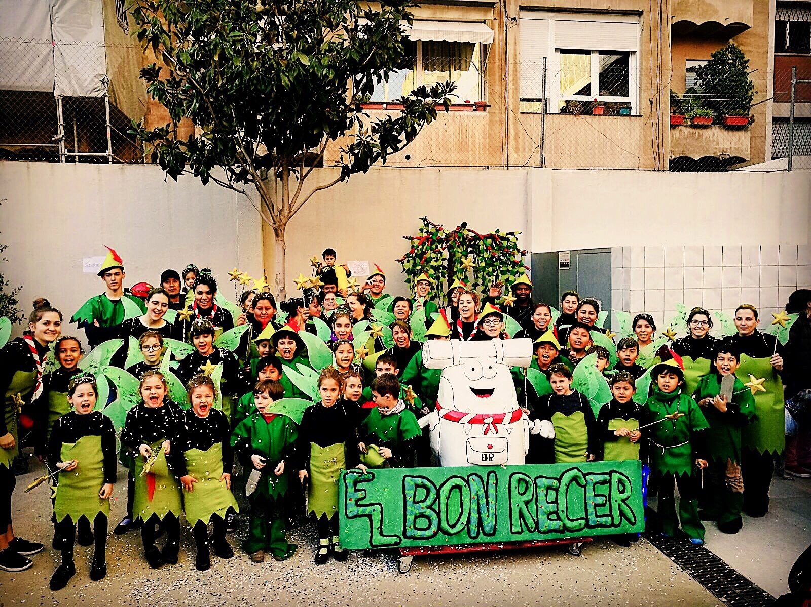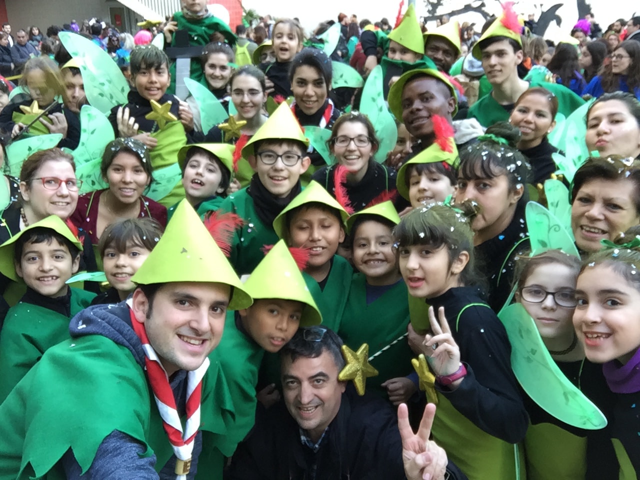 En els preàmbuls de l'inici de la Quaresma, com cada any, han arribat a l'esplai el color i la diversió del Carnaval. Enguany tocava guarnir-se de verd per complaure a Sa majestat, el rei Carnestoltes. Però, sobretot, a l'esplai teníem el gran repte d'aconseguir una disfressa a l'alçada del nostre nou i renovadíssim Mochilín, que ens havia d'acompanyar en la desfilada. No era, en absolut, una tasca senzilla, però després de donar-li moltes voltes, vam decidir inspirar-nos en els famosos personatges de Peter Pan i Campaneta per confeccionar els nostres vestits.
