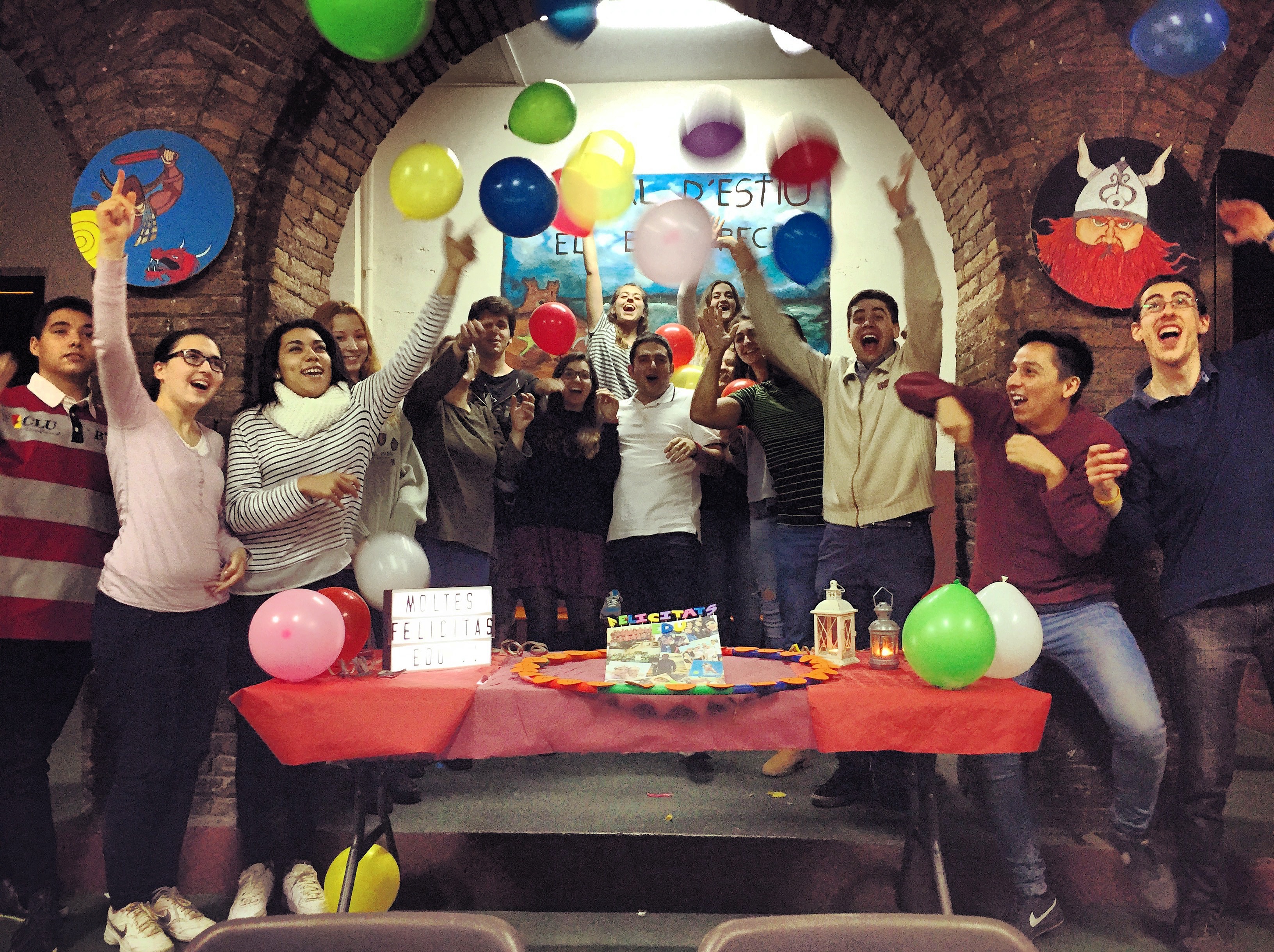 En plena época de exámenes, esta cena también sirvió de excusa para reunir todos los monitores y evadirse del estudio durante unas horas. Edu, todos los monitores te deseamos lo mejor para este nuevo año de tu vida y esperamos que puedas ser por muchos años más nuestro director. Gracias por sacar adelante este proyecto que es de todos y hacernos partícipes. Muchas felicidades!