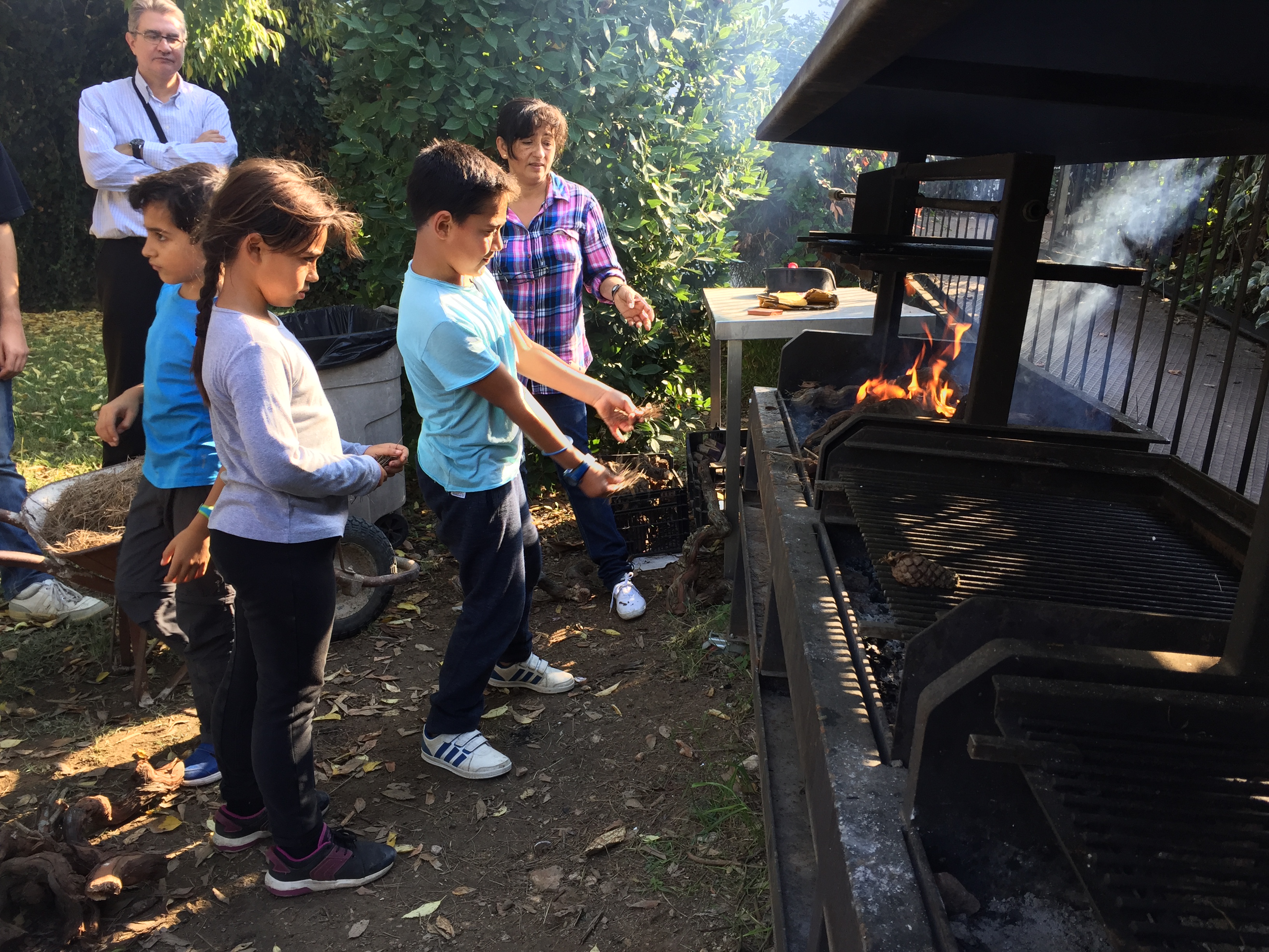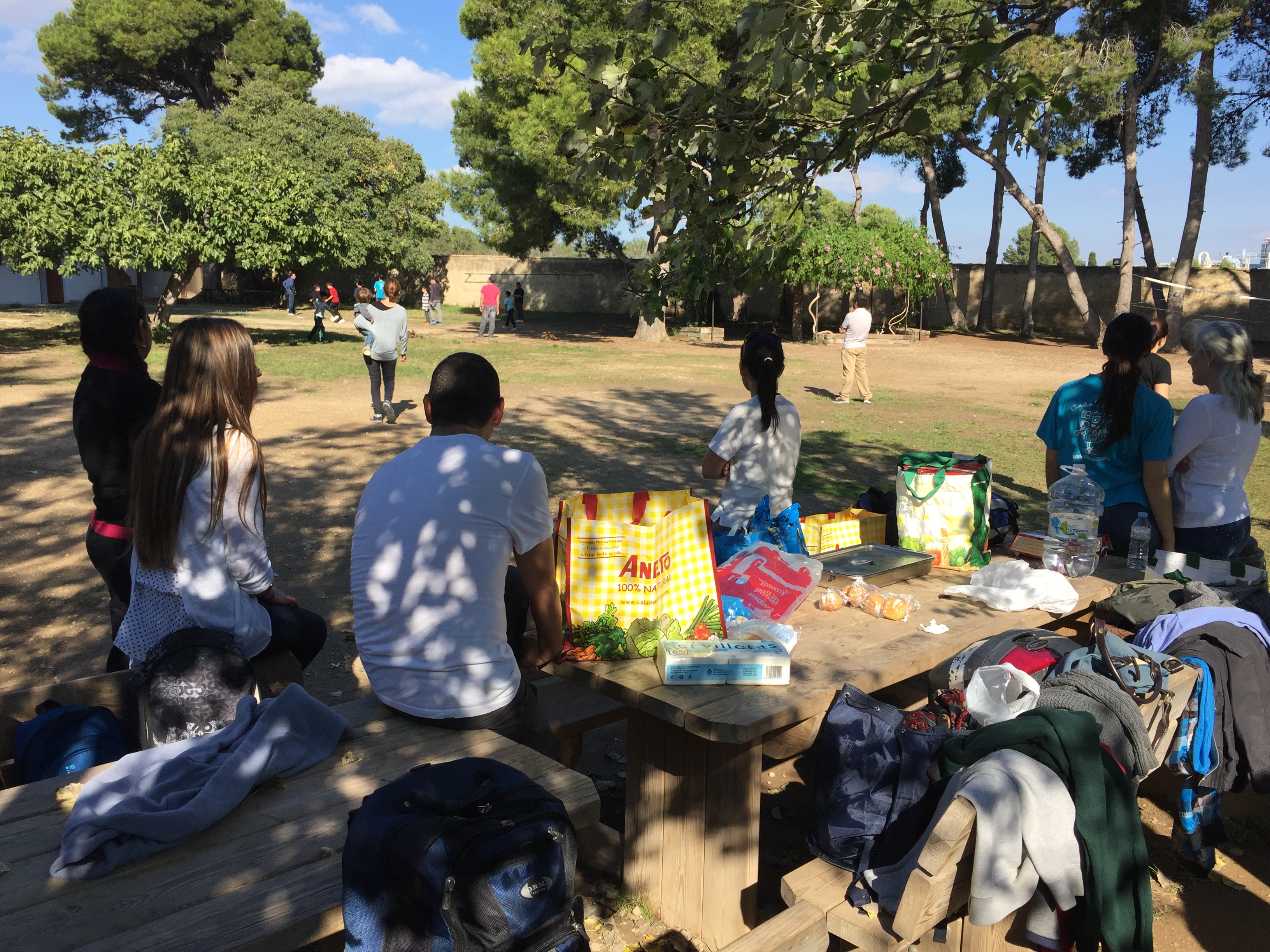 Como no podía ser de otro modo los hijos agotaron los padres y éstos poco a poco se fueron retiran y así iban haciendo las brasas para la barbacoa.